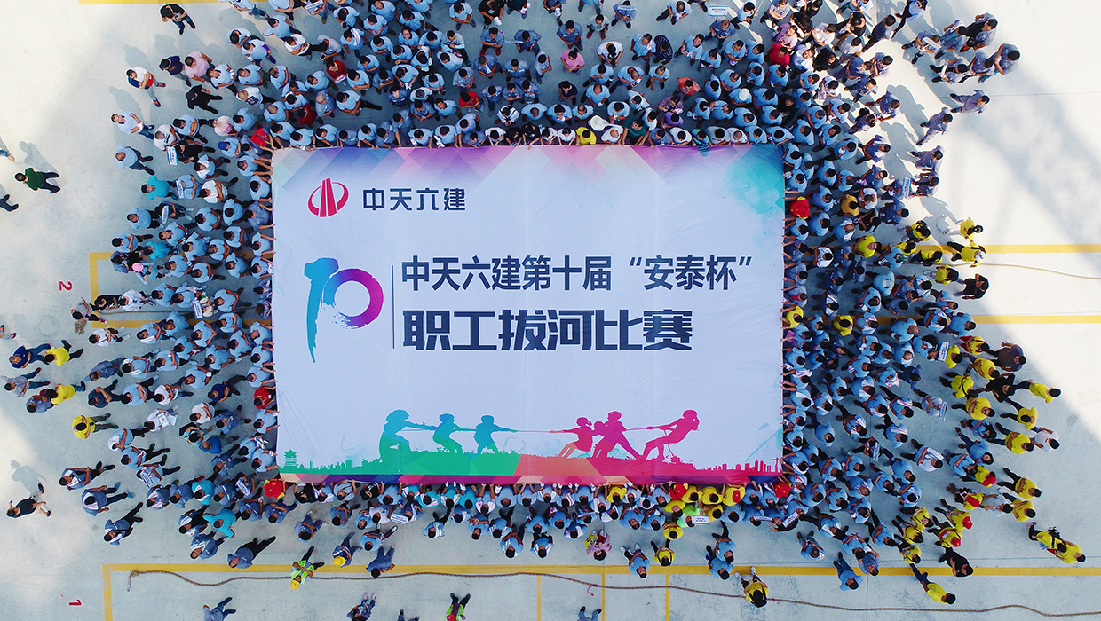 在北京集團創(chuàng)立22周年運動會上,全體成員共同搖晃動力繩圈2018下