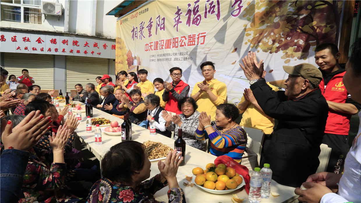 2017年重陽節(jié)六建志愿者在“中天道能食堂”為社區(qū)老人舉辦重陽宴