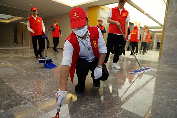 大家分頭投入到了各自的志愿活動中去。活動總執(zhí)行、中天控股集團(tuán)行政人力總監(jiān)吳華將志愿者分為四組,同步開展活動。中天美好集團(tuán)與中天建筑設(shè)計(jì)研究院在大堂聆聽錢塘銀座大廈介紹、消防知識培訓(xùn)、垃圾分類宣講,為即將遷入新大樓作準(zhǔn)備;集團(tuán)總部標(biāo)準(zhǔn)化部與PPP事業(yè)部組隊(duì)在錢塘銀座周圍撿拾垃圾,為美化公共環(huán)境作貢獻(xiàn);集團(tuán)總部行政人力部、技術(shù)發(fā)展部、產(chǎn)業(yè)發(fā)展部、投資事業(yè)部、基建部、財(cái)務(wù)分控部、審計(jì)監(jiān)察部分成兩組,分別為中天美好集團(tuán)和中天建筑設(shè)計(jì)研究院所在樓層打掃衛(wèi)生,為內(nèi)部和諧、清明的工作環(huán)境獻(xiàn)出一份力;市場企管部、綠建部前往艮山路學(xué)校做志愿服務(wù),為那里的特殊兒童送上關(guān)懷。此外,集團(tuán)總部高管也在基建事業(yè)部總經(jīng)理馮健的帶領(lǐng)下檢查了錢塘銀座的內(nèi)外部環(huán)境。